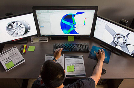 Precise fitments are achieved by taking measurements from over 100 different data points around the car. Those measurements lead to CAD models that are tested using Finite Element Analysis (FEA) to ensure SAE and TUV compliance while maximizing concavity. Each wheel is specifically made for each vehicle make and model.